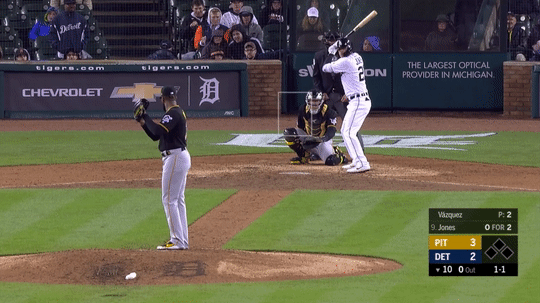Posting a 70 wRC+ in 129 games in 2018, Jones retooled his mechanics this offseason to follow a more level swing path. This change is designed to make more contact and improve on his 30.4% strikeout rate from last season. The first example is Jones’ swing from July 25, 2018 against the Royals compared to April 17th, 2019 against the Pirates.