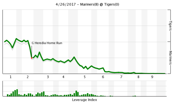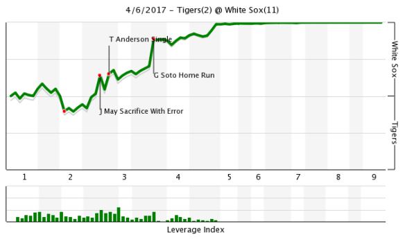 There were really no surprises as far as best and worst performers go according to WPA (win probability added). JaCoby Jones stood out for the Tigers, while Melky Cabrera did so for the White Sox. On the flip side, Sox ace José Quintana didn’t gave his team a chance, while Shane Greene left a mess for K-Rod to clean up in the ninth.