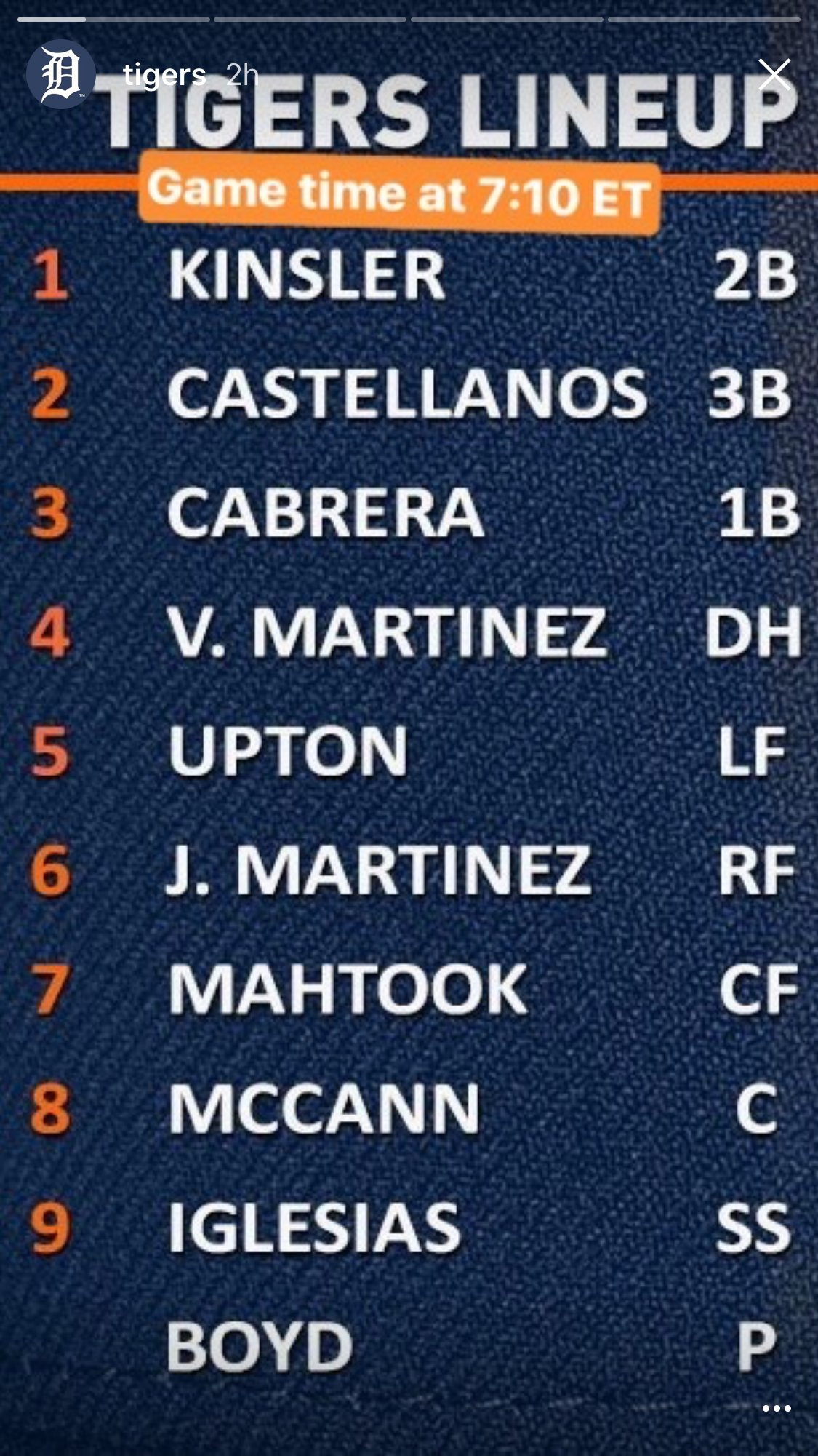 THINGS OF NOTE: Justin Upton is being held out of the lineup due to that forearm contusion he suffered in the game last night. He’ll also probably get tomorrow off too. J.D. Martinez took batting practice with the team and is visiting with them tonight! After they head off to Minnesota, J.D. will go to Lakeland to continue to work out.